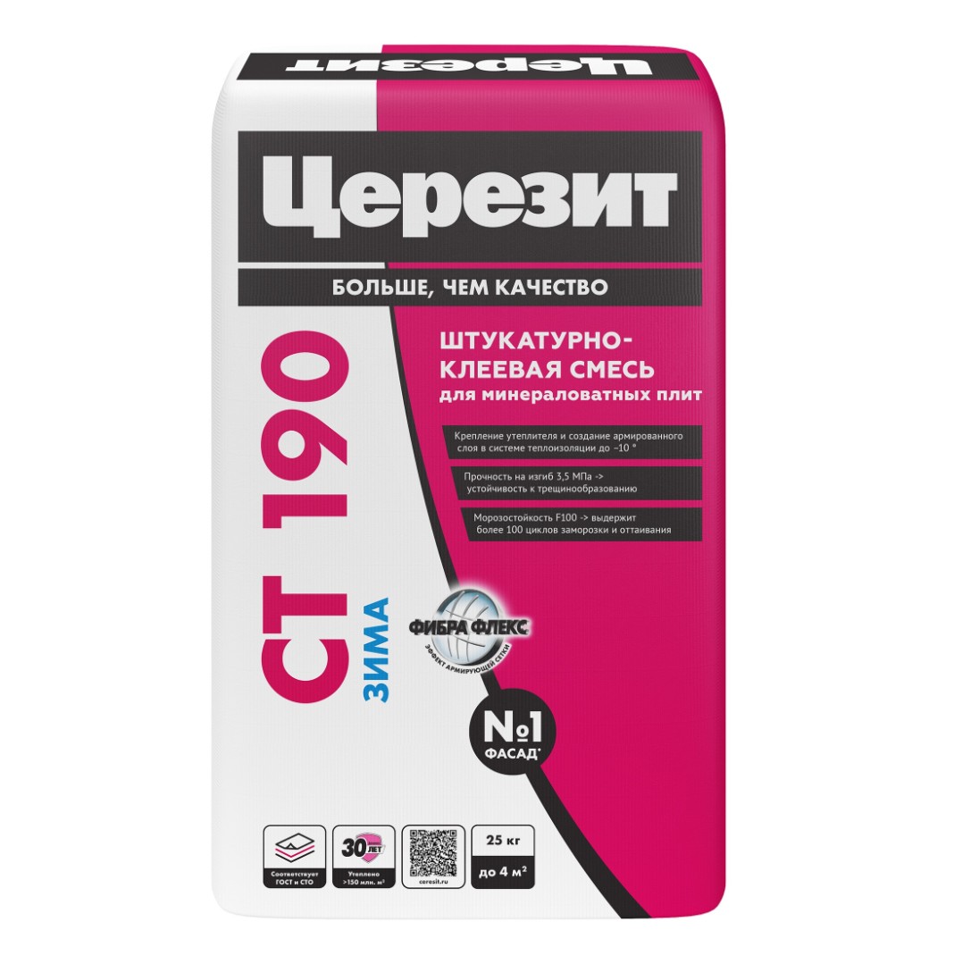 Штукатурно-клеевая смесь Ceresit СТ 190 для МВ плит Зима (25 кг) в Грабово