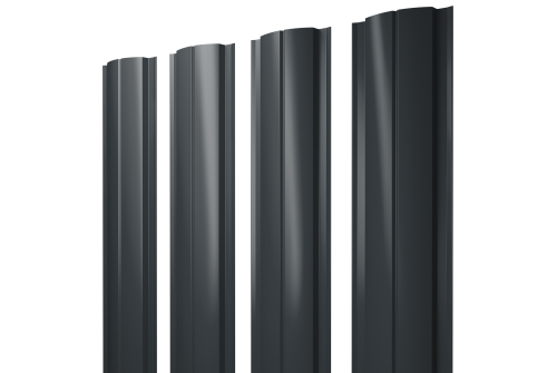 Штакетник Полукруглый Slim с прямым резом 0,45 PE-Double RAL 7016 антрацитово-серый