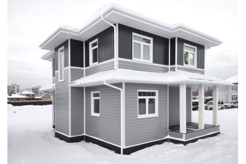 Квадро брус — металлический сайдинг, который имитирует внешний вид планкена "доска в разбежку". Простая геометрия профиля придает дому Скандинавский стиль. Современный дизайн достигается за счет прямых линий. В покрытии Print Elite максимально похож на натуральное дерево