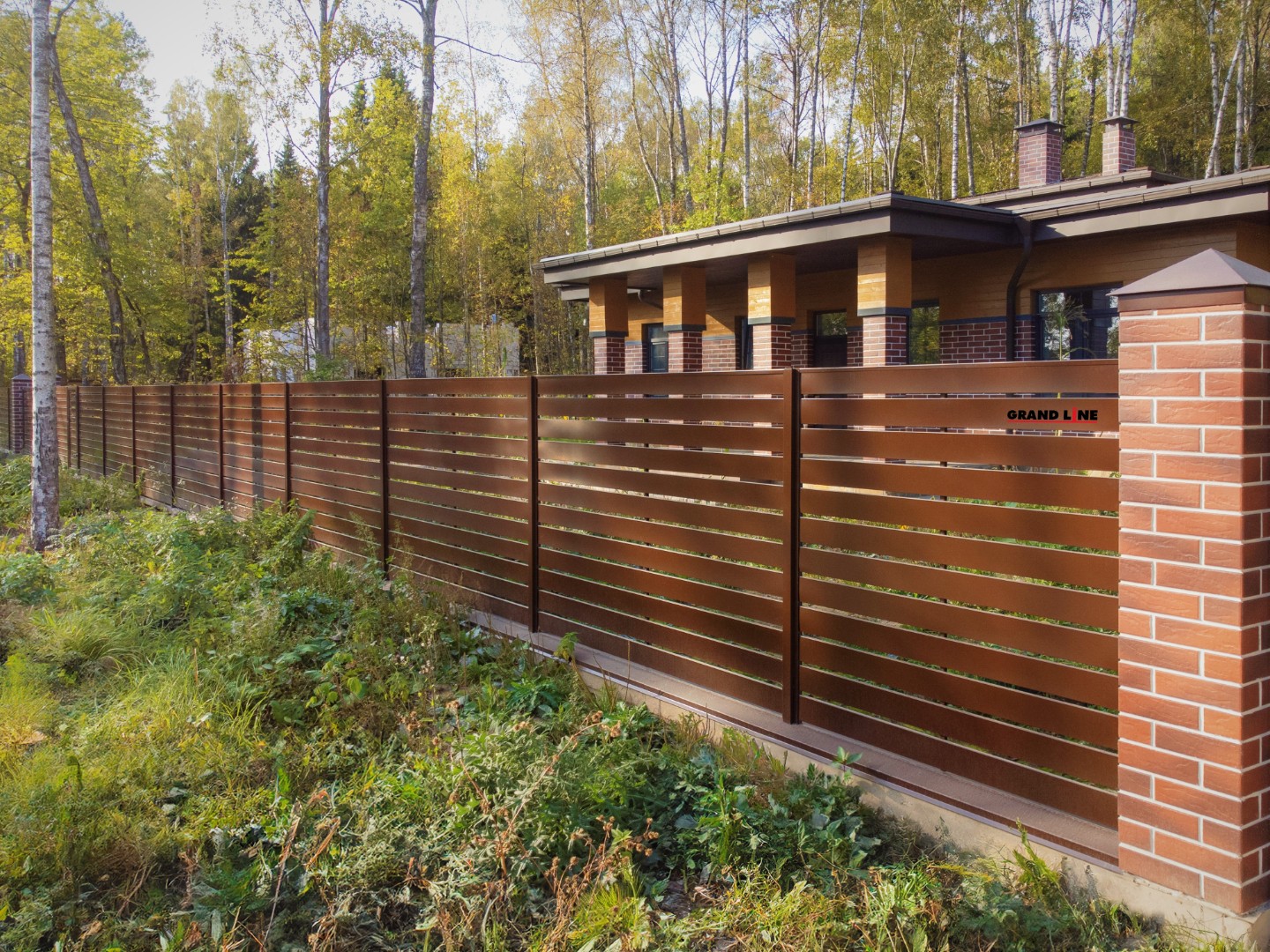 Ламель лицевая 125 забора жалюзи Texas 0.5 Satin с пленкой RAL 8017 шоколад в Грабово