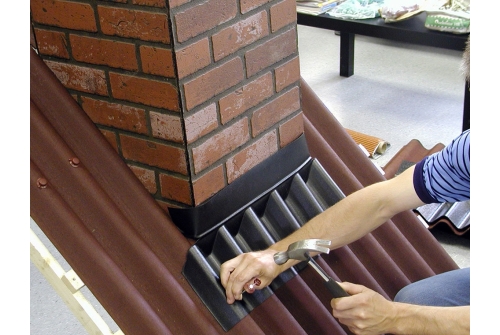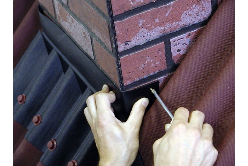 Покрывающий фартук закрывает стык между ондулином и вертикальной стеной или печной трубой.